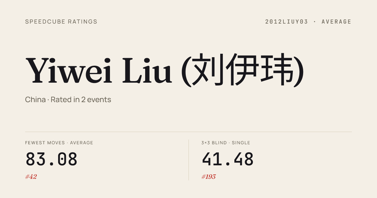 - Mar 22, 20263x3x3 Fewest Moves · Round 1FMCantonHaizhu2026 · 6th23.33