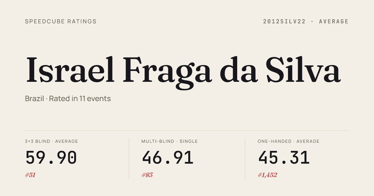 - Mar 7, 20263x3x3 Blindfolded · FinalZoioffCampinas2026 · 1st21.72