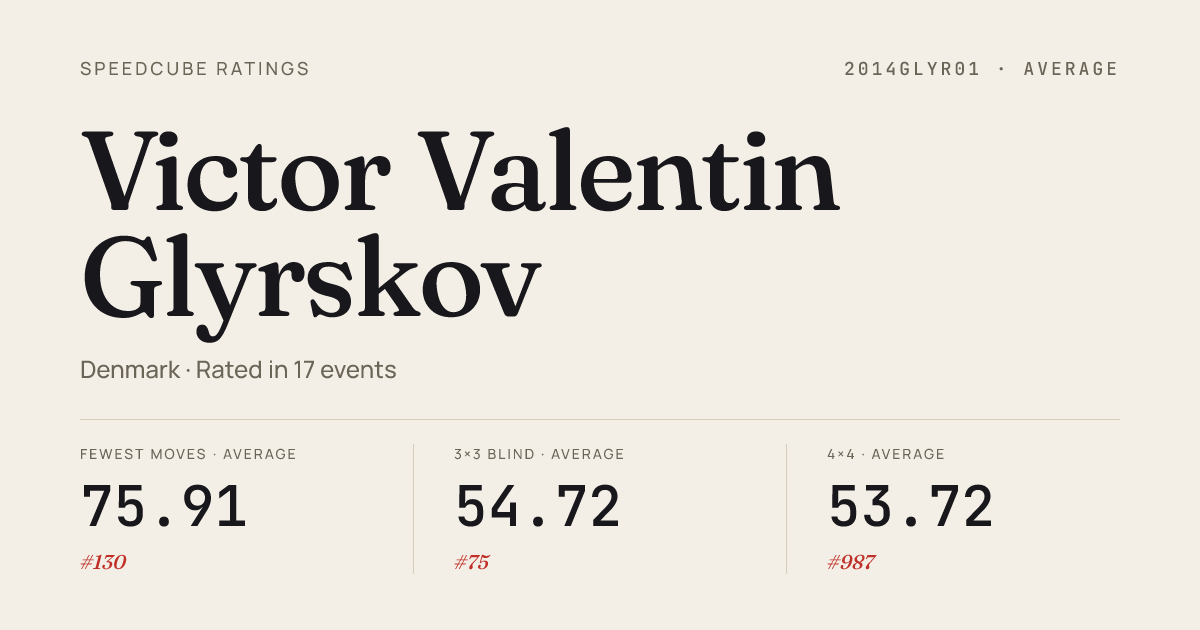 - Mar 15, 20263x3x3 Cube · Round 2PiCubingHvidovre2026 · 8th8.98