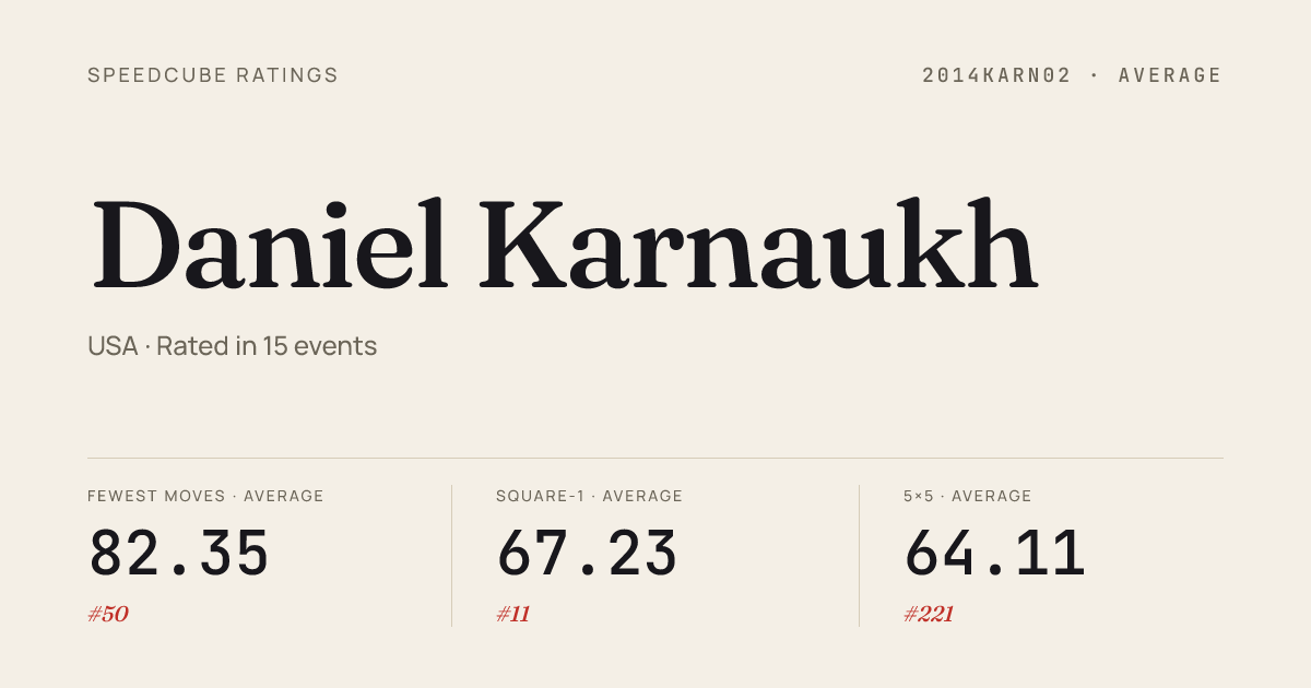 - Apr 5, 20265x5x5 Cube · Round 1SideEventsinPalisades2026 · 5th53.19