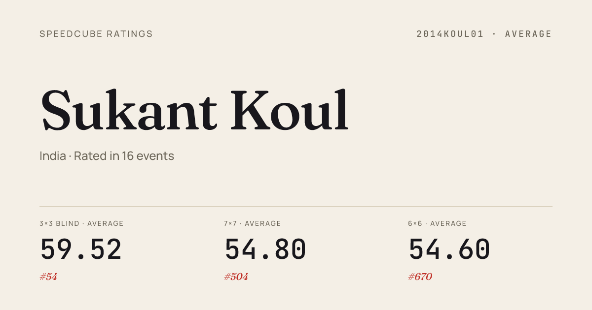 - Mar 29, 20263x3x3 Cube · FinalShriRamCubingChallenge2026 · 9th9.61