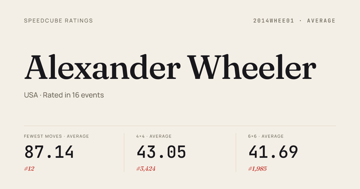 - Mar 29, 20263x3x3 Fewest Moves · FinalSoutheastFMCChampionship2026 · 1st21.67