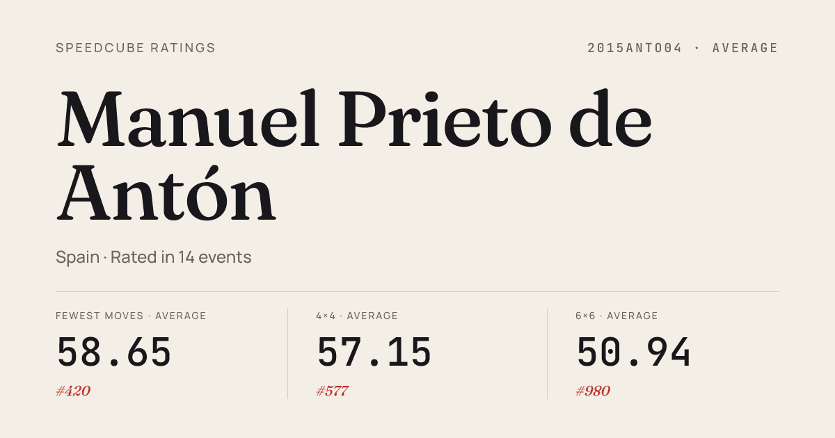 - Apr 12, 20263x3x3 Cube · FinalGetafeOpen2026 · 3rd8.16