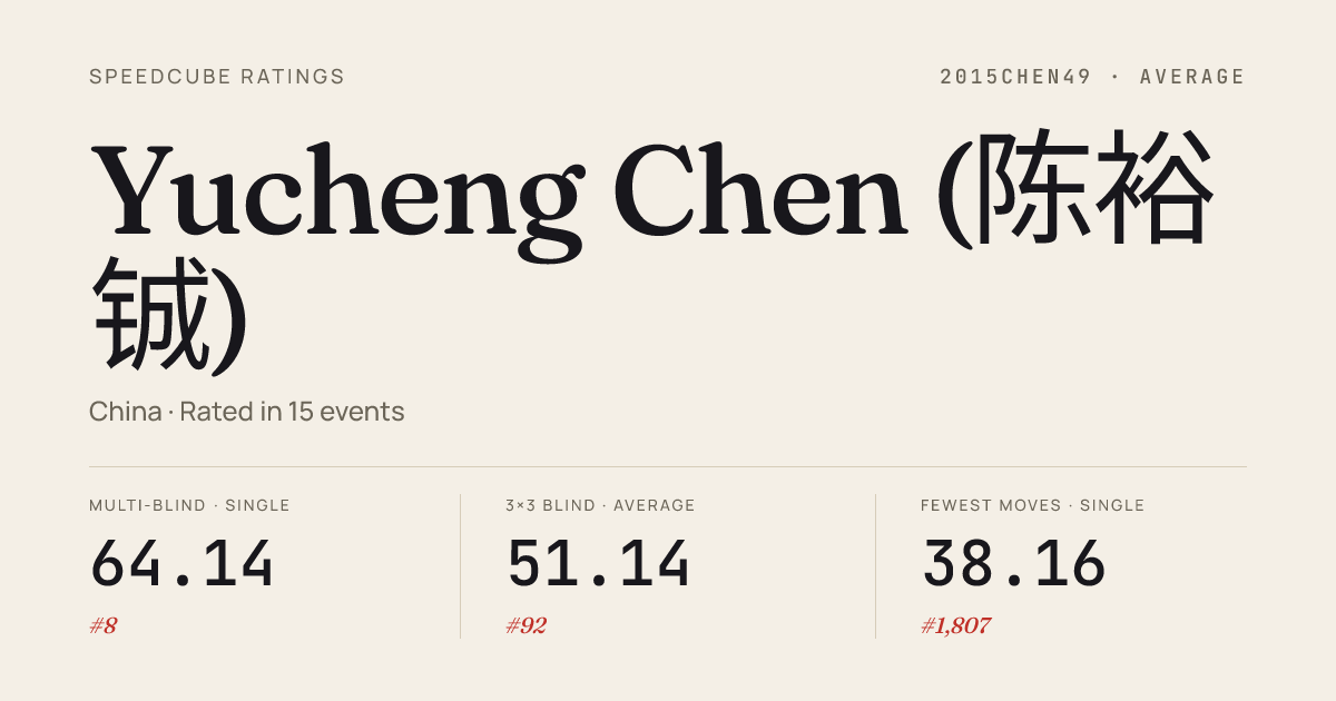 Yucheng Chen (陈裕铖) · SCRRatings by event