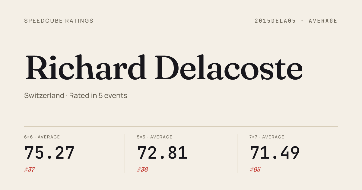 - Jul 6, 20253x3x3 Cube · Semi-FinalWC2025 · world · 29th6.75