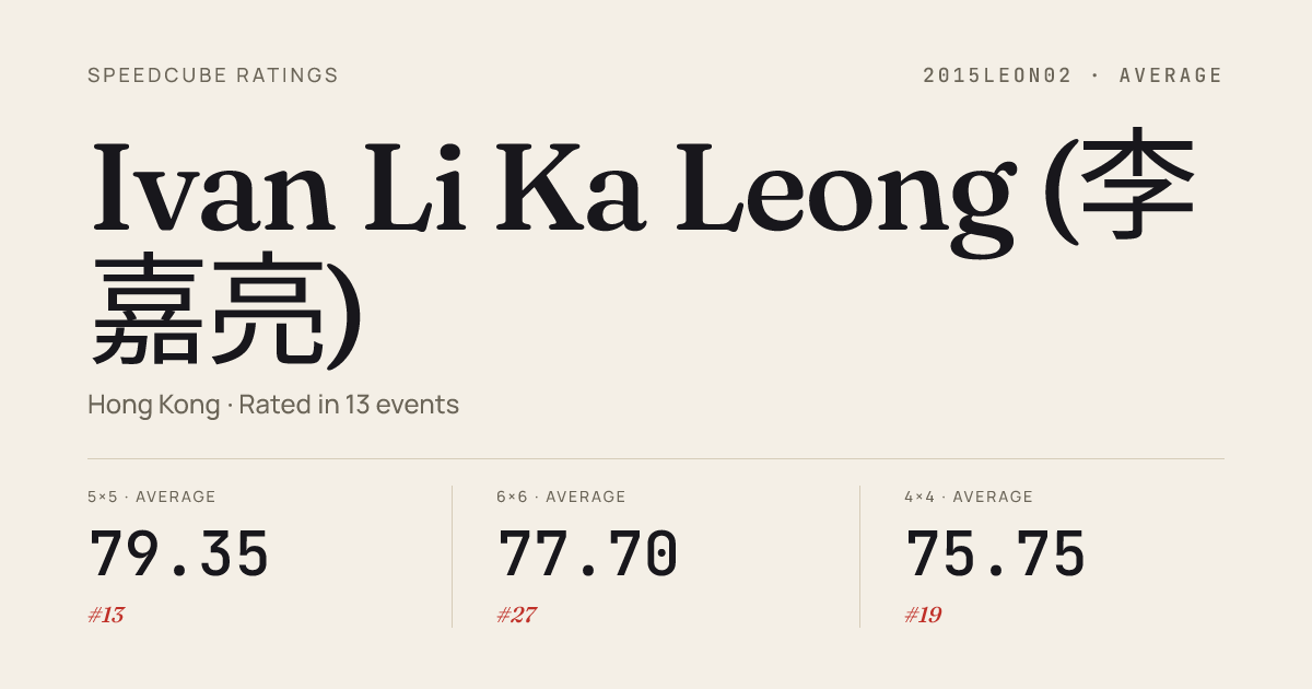 Ivan Li Ka Leong (李嘉亮) · SCRRatings by event