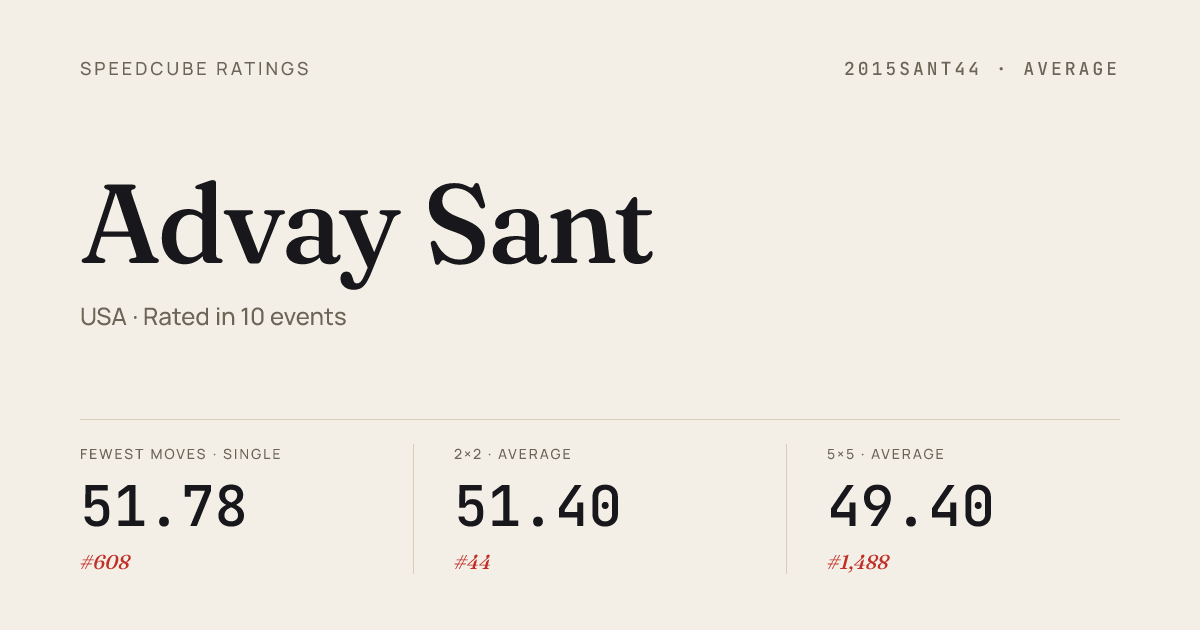 - Mar 7, 20262x2x2 Cube · FinalSaraswatiCollegeOpen2026 · 2nd1.81