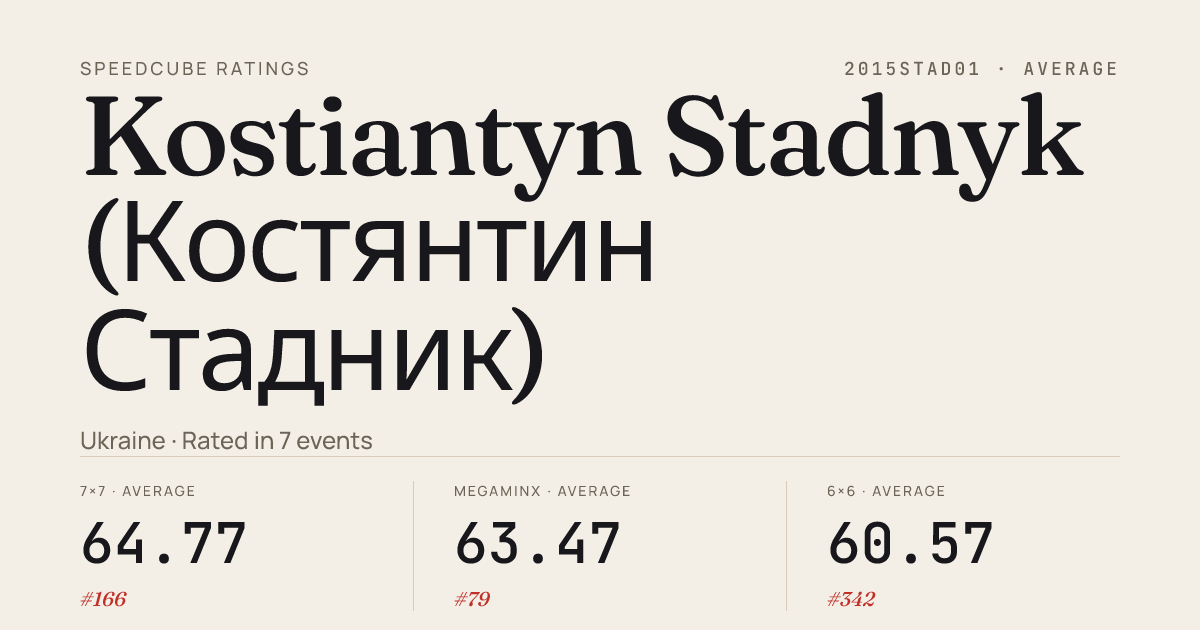 Kostiantyn Stadnyk (Костянтин Стадник) · SCRRatings by event
