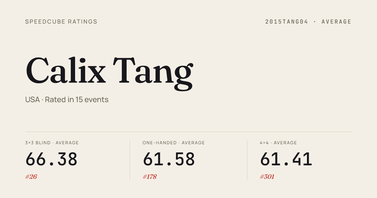 - Mar 1, 20263x3x3 Cube · Round 1BerkeleyFavorites2026 · 17th9.20