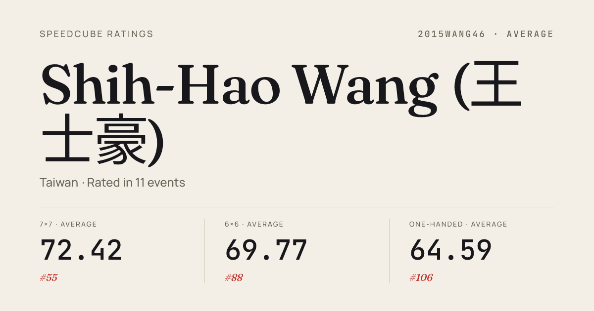 - Dec 21, 20253x3x3 Cube · Semi-FinalTaiwanChampionship2025 · 23rd8.48