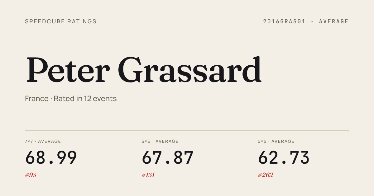 - Apr 6, 20263x3x3 Cube · Round 1FrenchChampionship2026 · national · 35th9.02