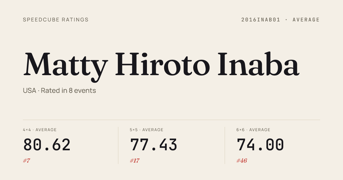 - Apr 4, 20263x3x3 Cube · Round 1PBsinPalisadesSpring2026 · 1st5.50