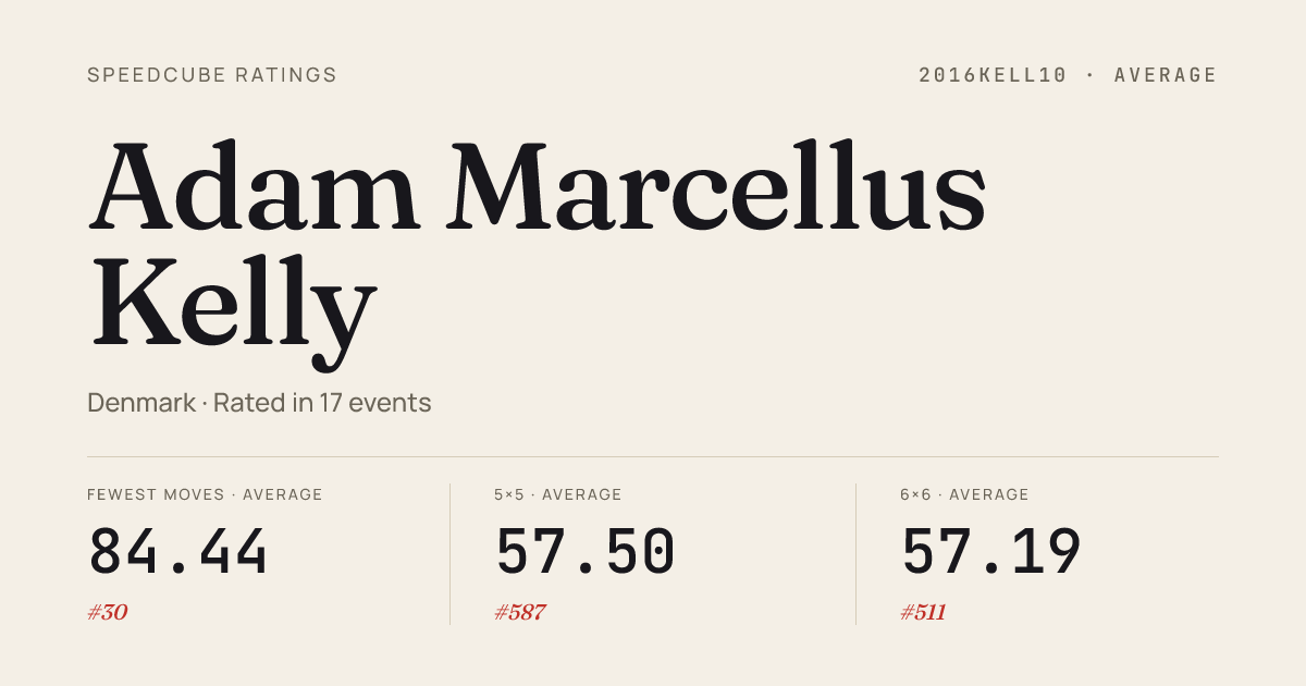 - Mar 15, 20263x3x3 Cube · FinalPiCubingHvidovre2026 · 4th8.02