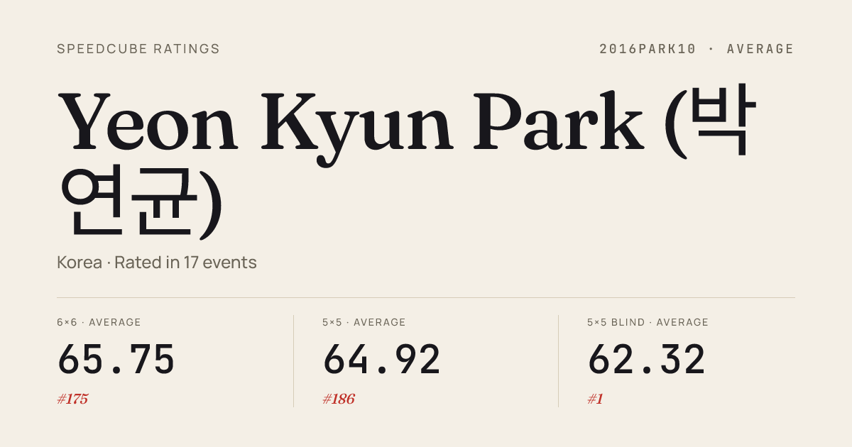 - Apr 18, 20265x5x5 Blindfolded · FinalSeoulSilentShhpring2026 · 1st4:06.38
