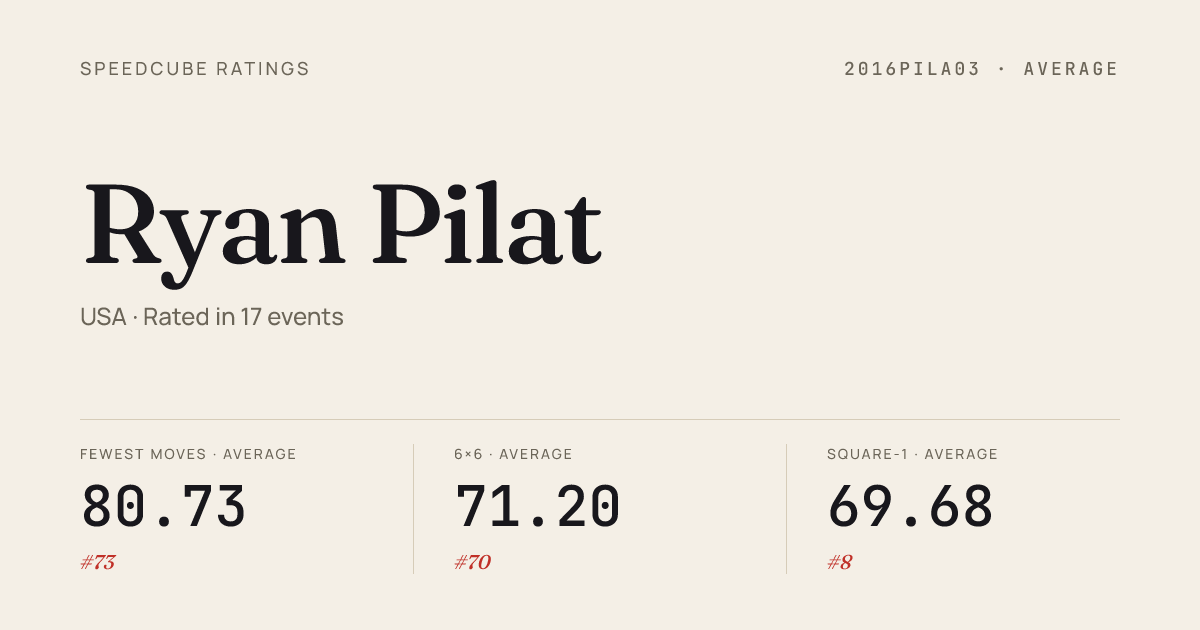 - Apr 5, 20263x3x3 Fewest Moves · FinalQuietDownInPflugerville2026 · 1st24.67