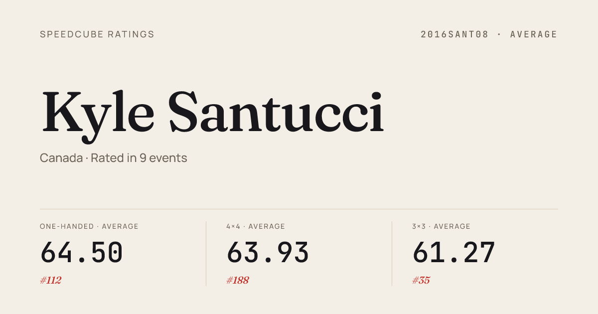 - Mar 7, 20263x3x3 Cube · FinalCalgarySpring2026 · 1st5.79