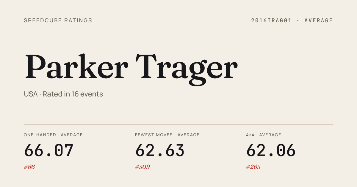 - Apr 5, 20263x3x3 One-Handed · FinalSideEventsinPalisades2026 · 6th12.00
