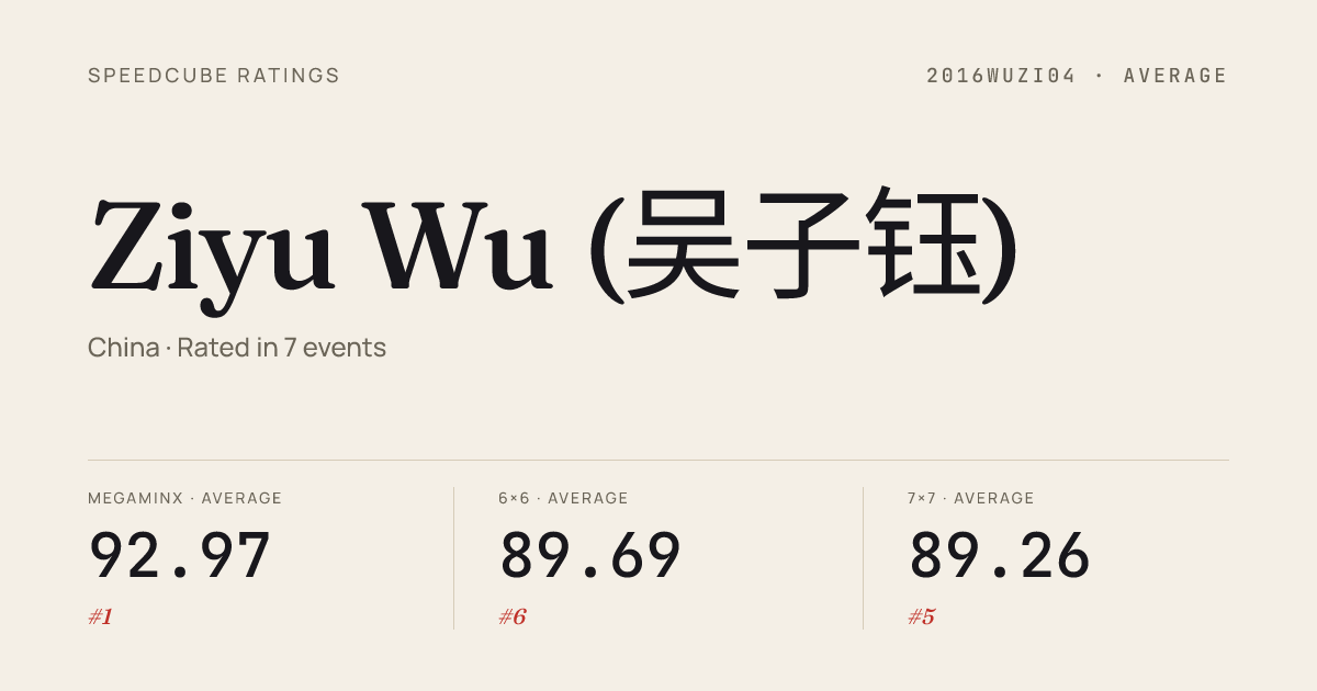 - Apr 12, 20263x3x3 Cube · Semi-FinalXuzhouZenith2026 · 19th7.51