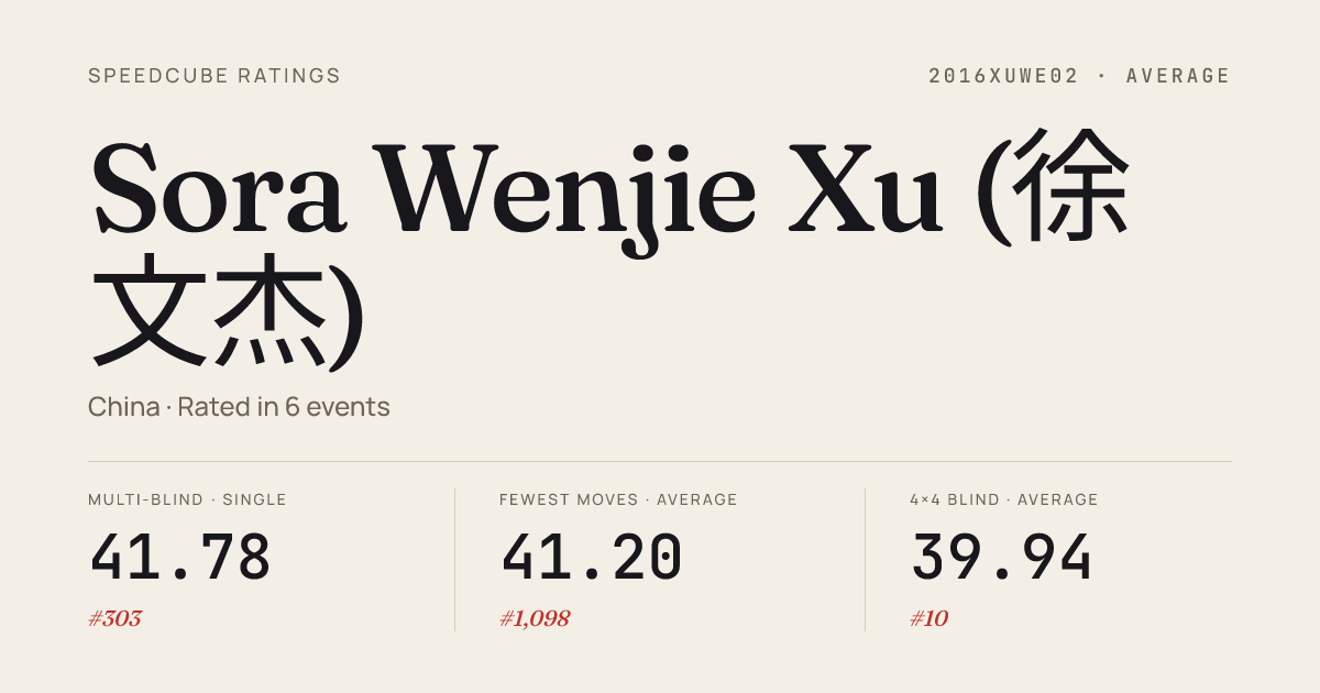 Sora Wenjie Xu (徐文杰) · SCRRatings by event