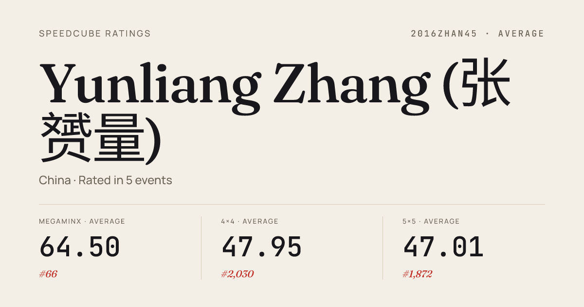 - Dec 8, 20244x4x4 Cube · Round 1ZhengzhouOpen2024 · 19th33.04