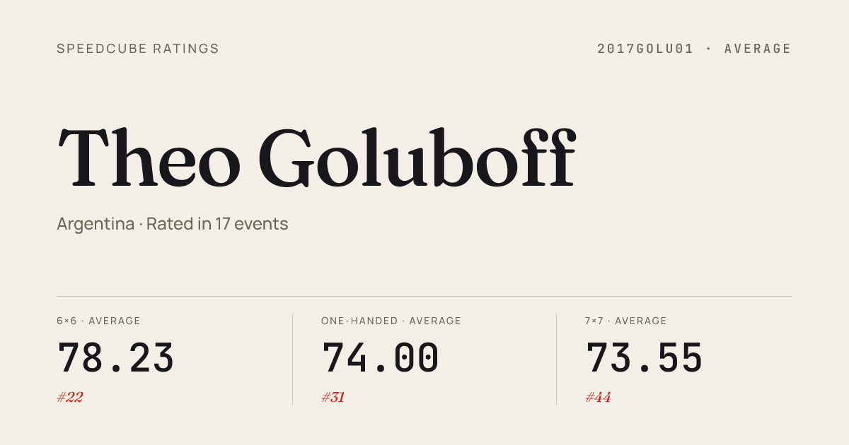 - Mar 29, 20263x3x3 Cube · Round 2PascuasenlaDiTella2026 · 2nd7.32