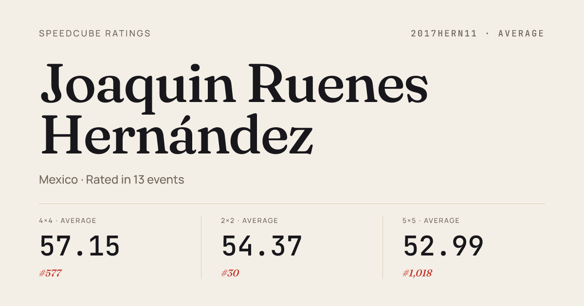 - Apr 5, 20263x3x3 Cube · Round 1NawiTlaxcala2026 · 2nd7.87
