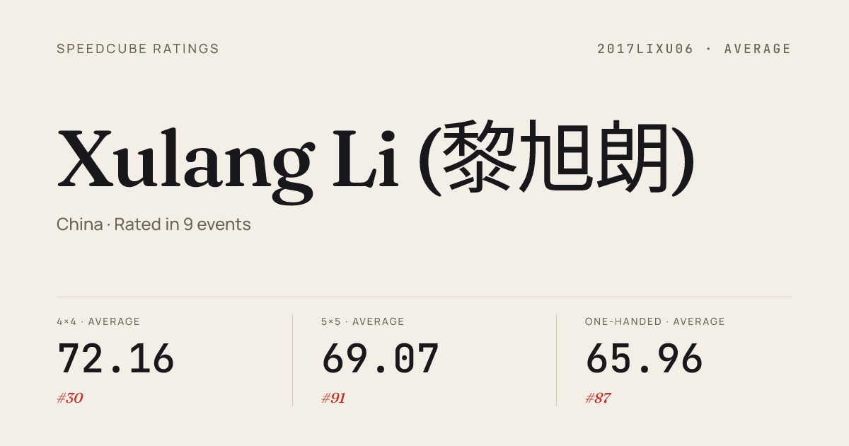 - Apr 12, 20264x4x4 Cube · FinalXuzhouZenith2026 · 4th25.75