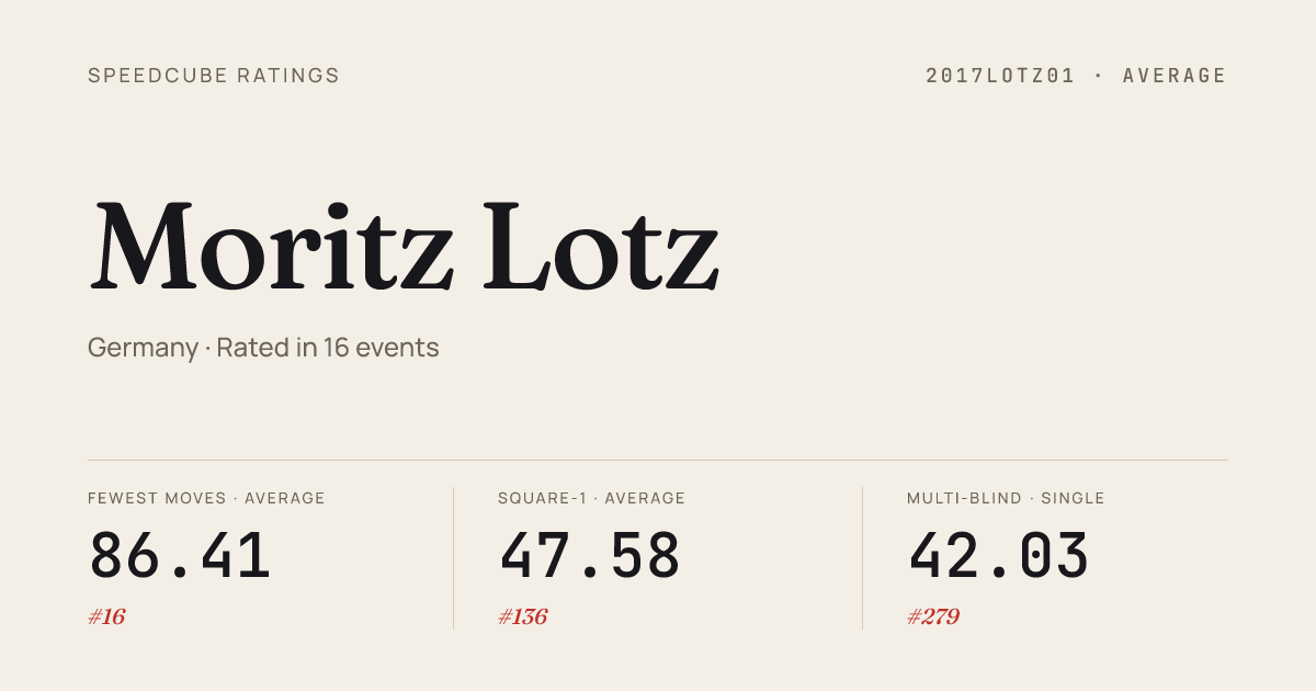 - Jan 31, 20263x3x3 Fewest Moves · Round 1EuropeFMCFriendsWinter2026 · 4th22.00