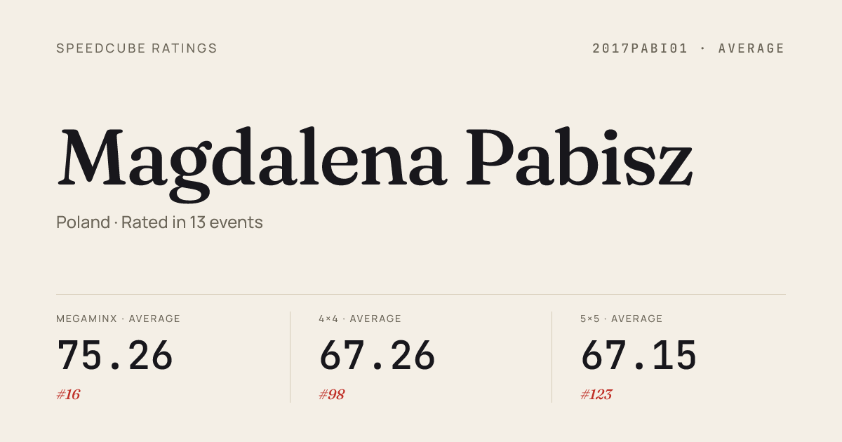- Apr 12, 20263x3x3 Cube · FinalMielecCubingDays2026 · 6th8.20