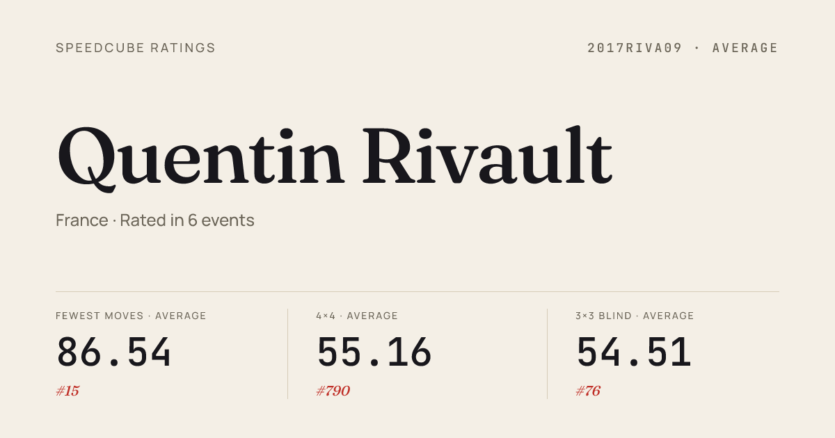 - Apr 6, 20263x3x3 Cube · Round 2FrenchChampionship2026 · national · 10th7.31