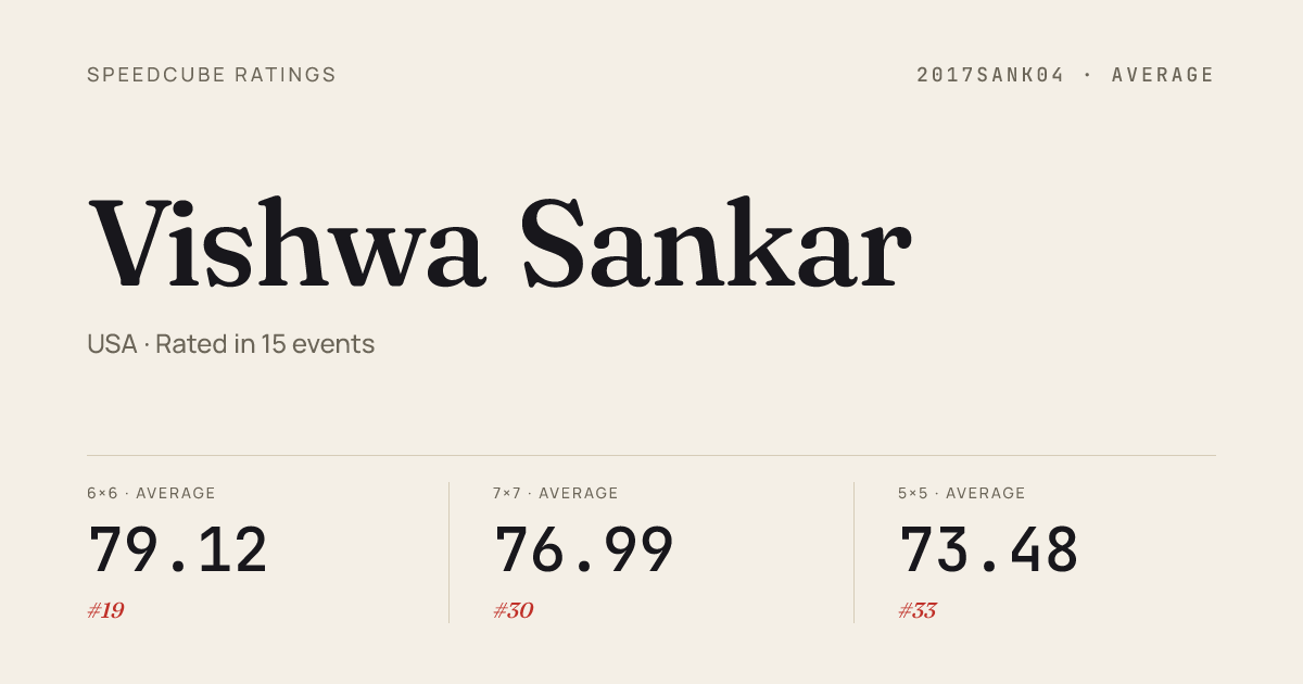 - Apr 11, 20263x3x3 Cube · FinalCubeAgainstCancerRoswell2026 · 5th8.27
