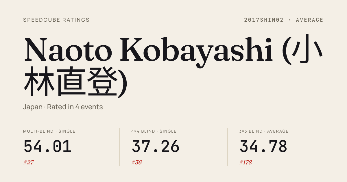 Naoto Kobayashi (小林直登) · SCRRatings by event