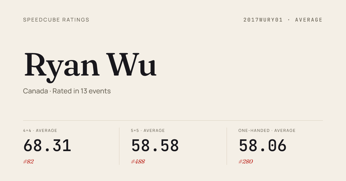 - Nov 1, 20253x3x3 One-Handed · Combined FinalPickeringFavouritesFall2025 · 4th13.49