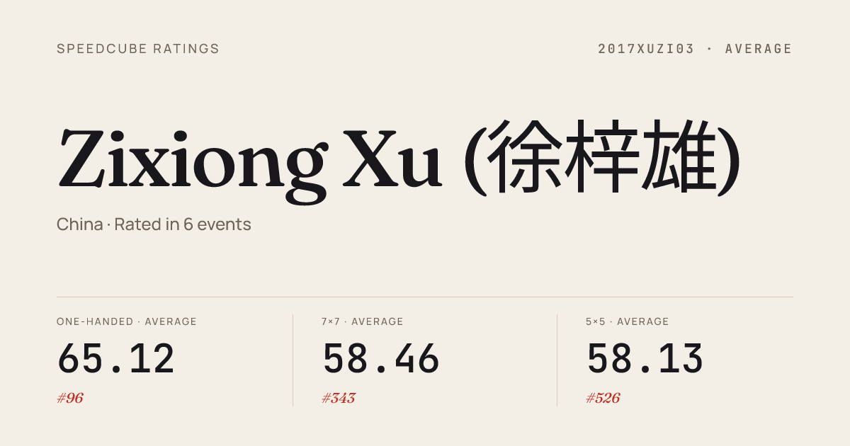 Zixiong Xu (徐梓雄) · SCRRatings by event