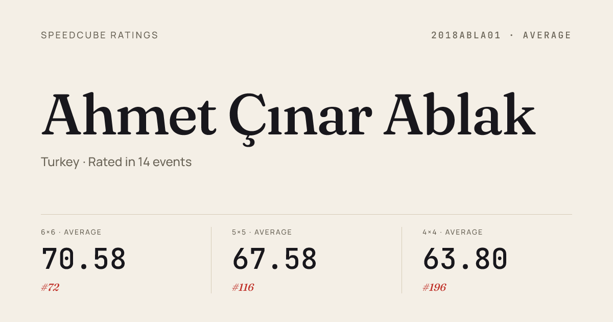 - Apr 12, 20263x3x3 Cube · Round 2LobaAprilAnkara2026 · 1st7.02