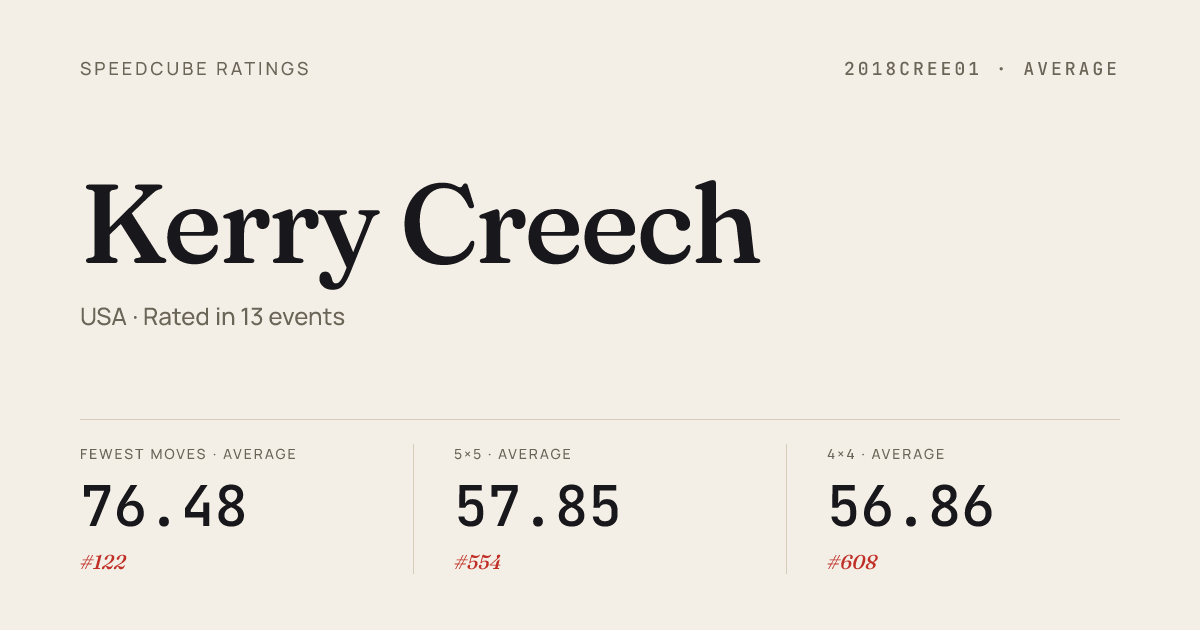 - Mar 8, 20263x3x3 Cube · Round 2NCSUWolfpackSpring2026 · 2nd6.79