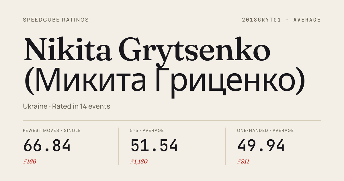 - Jan 31, 20263x3x3 Fewest Moves · Round 1EuropeFMCFriendsWinter2026 · 71st26