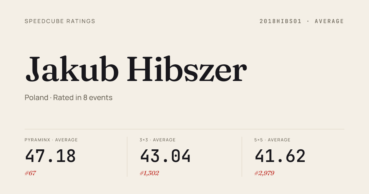- Jan 10, 20263x3x3 Cube · Round 1ScrambledCubesLegnica2026 · 5th9.19