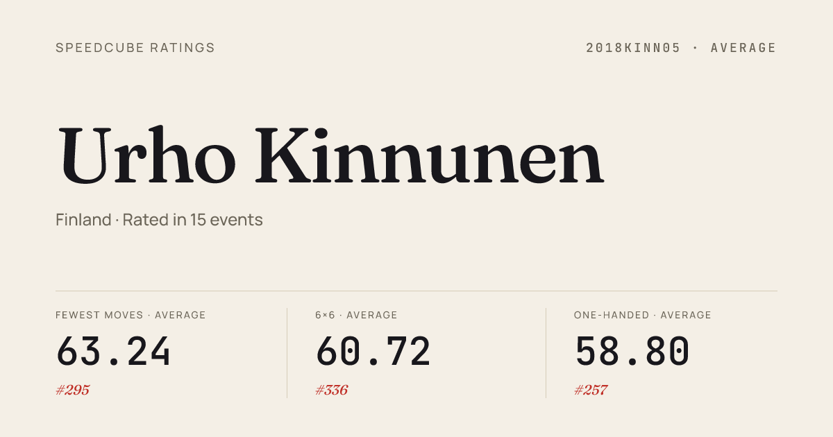 - Apr 12, 20263x3x3 Cube · Round 1VERKXIV2026 · 2nd8.06