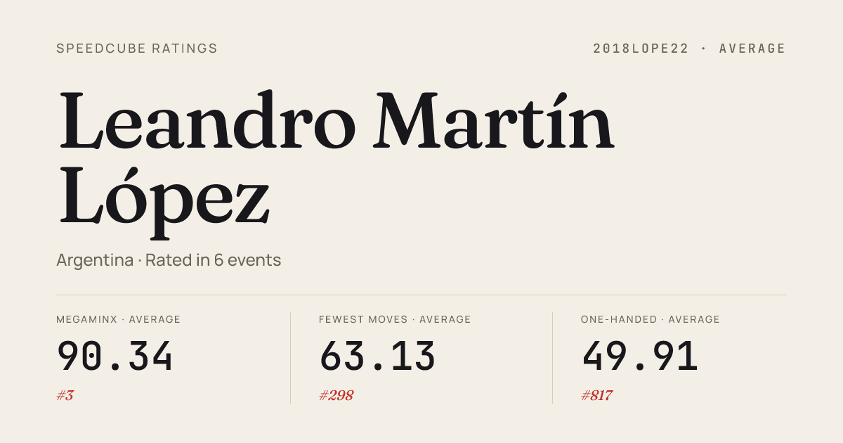- Mar 29, 20263x3x3 Cube · Round 2PascuasenlaDiTella2026 · 6th9.70