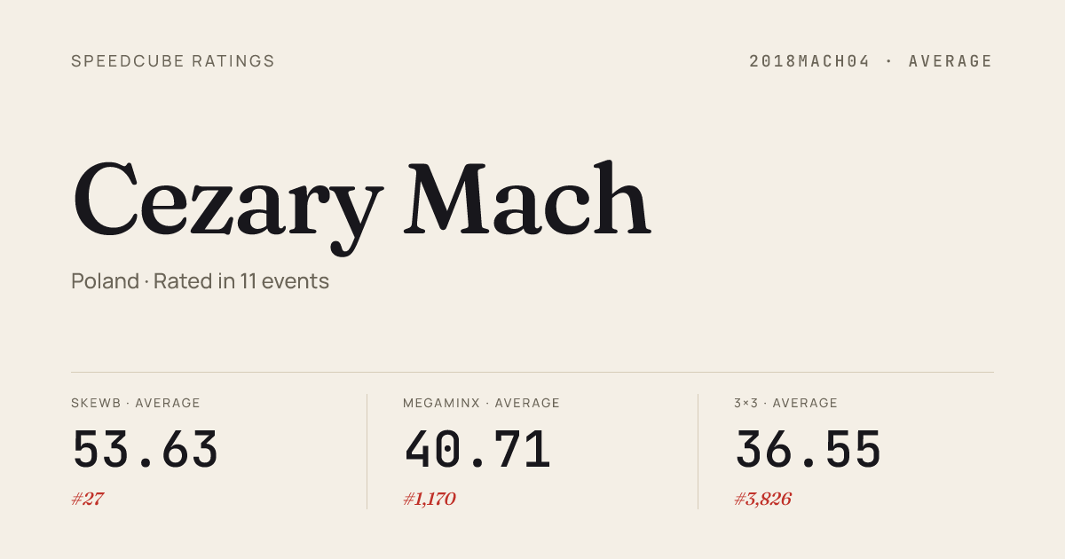 - Mar 22, 20263x3x3 Cube · Round 1GLSGdanskII2026 · 16th10.62