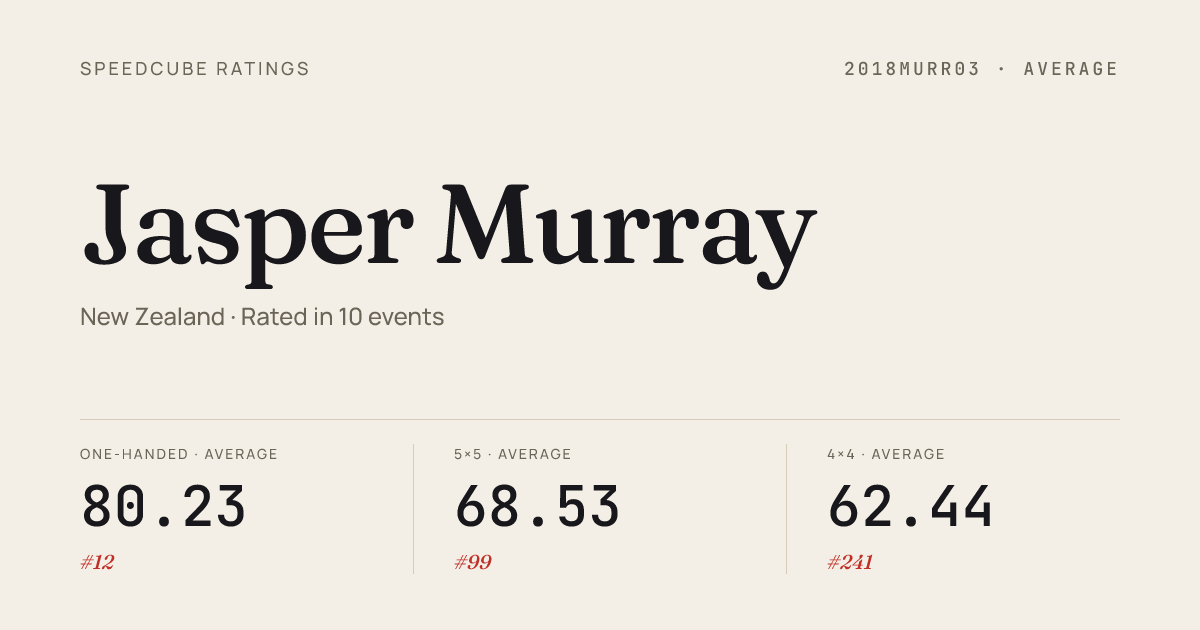 - Apr 12, 20263x3x3 Cube · FinalNZSouthIslandChamps2026 · 3rd5.48