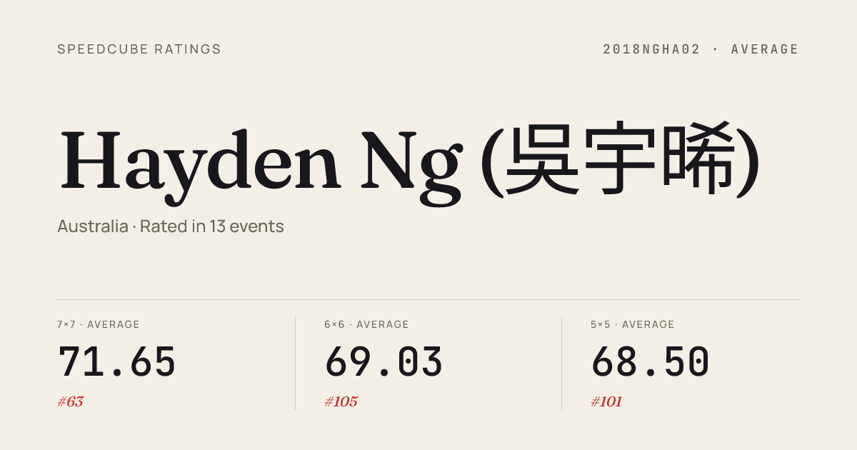 Hayden Ng (吳宇晞) · SCRRatings by event