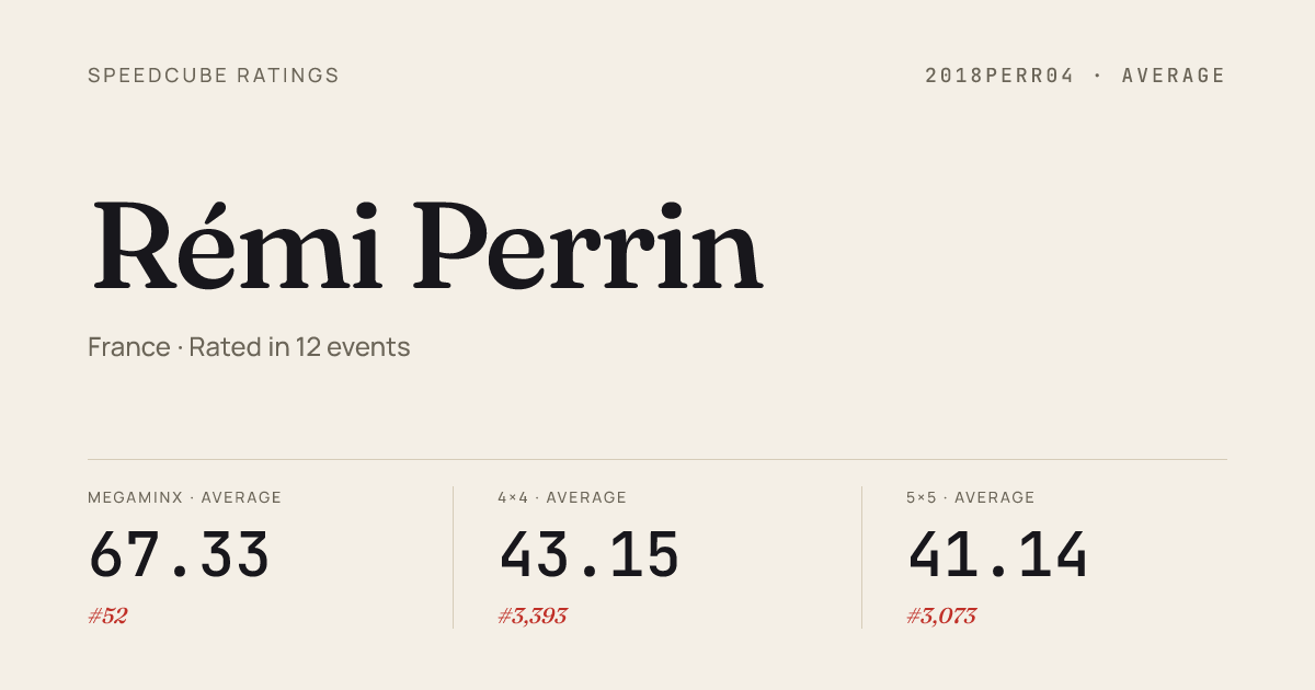 - Apr 6, 20263x3x3 Cube · Round 1FrenchChampionship2026 · national · 47th9.41