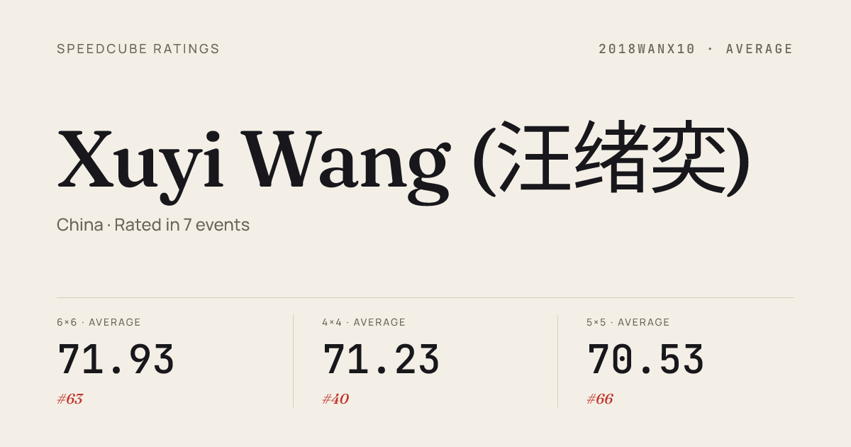 - Apr 5, 20263x3x3 Cube · Semi-FinalXianCherryBlossom2026 · 18th7.17