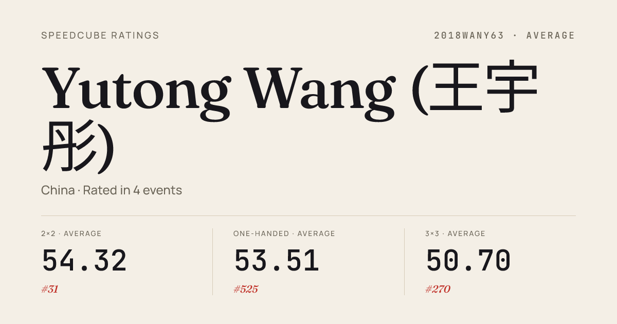 - Jan 11, 20263x3x3 Cube · Round 2BeijingWinter2026 · 19th7.75