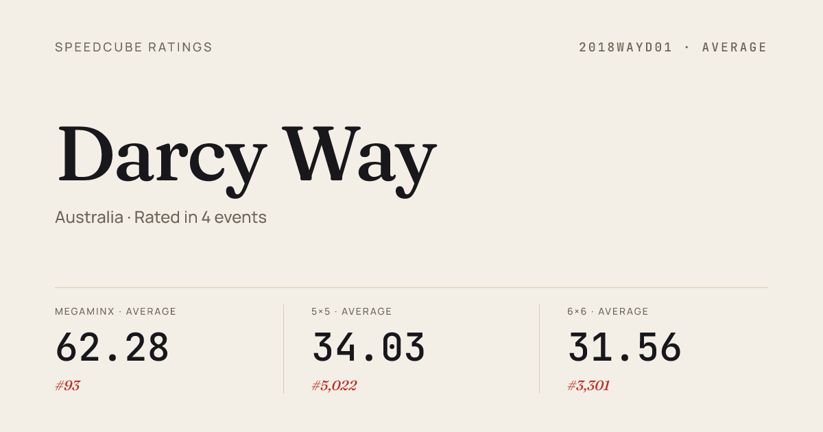 - Aug 17, 2025Megaminx · Round 1KooyongClockClash2025 · 3rd38.18