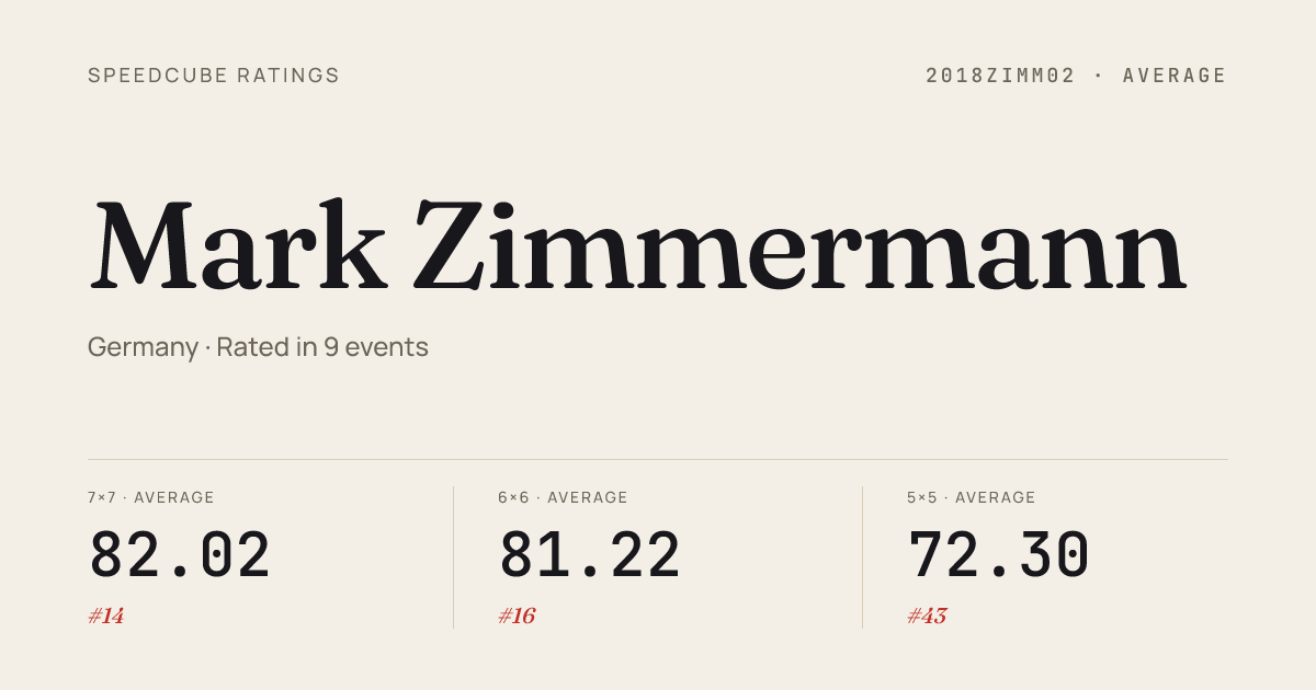 - Jan 18, 20263x3x3 Cube · FinalRheinSiegOpen2026 · 9th8.32