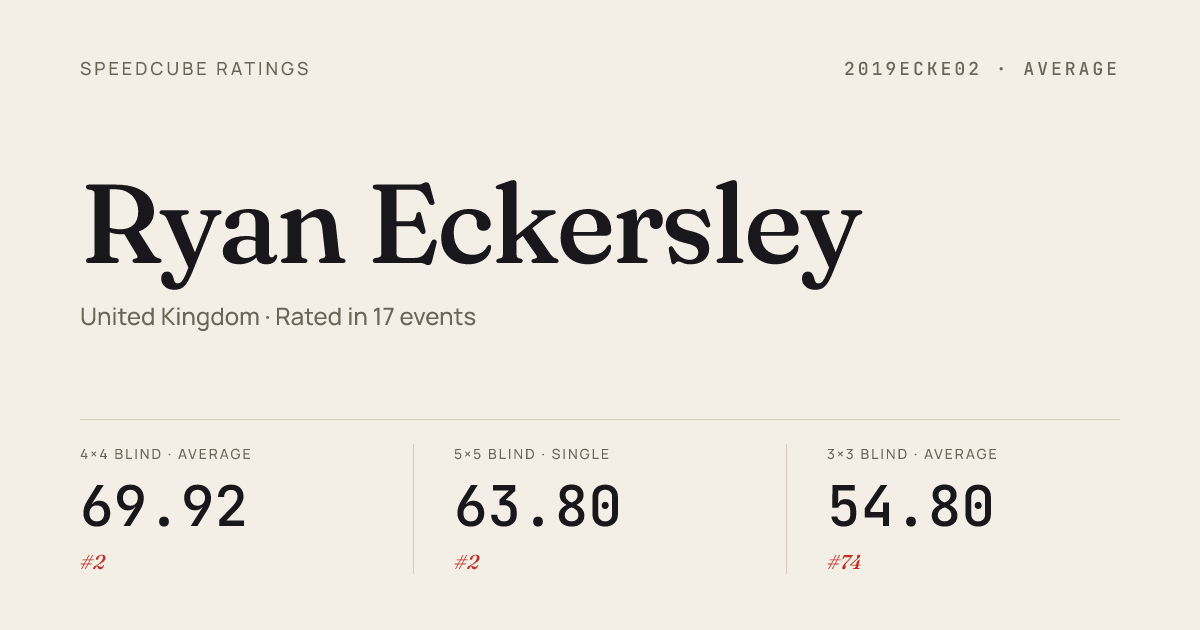 - Apr 19, 20263x3x3 Cube · Round 1LiverpoolSpring2026 · 23rd11.74