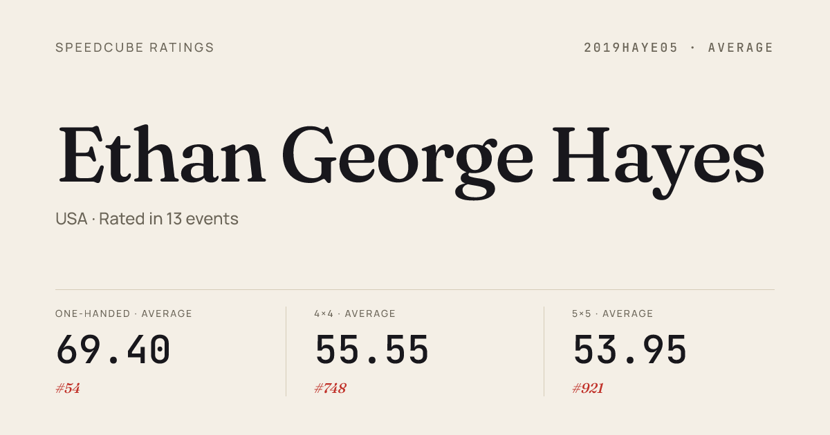 Apr 11, 20263x3x3 One-Handed · Round 1TriCitiesSpring2026 · 2nd11.40Apr 11, 20264x4x4 Cube · Round 1TriCitiesSpring2026 · 2nd34.60Apr 11, 20264x4x4 Cube · Combined FinalTriCitiesSpring2026 · 2nd33.11Apr 11, 2026Clock · Round 1TriCitiesSpring2026 · 5th11.42Apr 11, 2026Clock · Combined FinalTriCitiesSpring2026 · 5th10.03Apr 11, 2026Square-1 · Round 1TriCitiesSpring2026 · 1st11.84Apr 11, 2026Square-1 · Combined FinalTriCitiesSpring2026 · 1st13.52Mar 28, 20263x3x3 Cube · FinalBigSkysHurrah2026 · 2nd8.45Mar 28, 20263x3x3 Cube · Round 1BigSkysHurrah2026 · 3rd9.50Mar 28, 20263x3x3 Blindfolded · FinalBigSkysHurrah2026 · 2nd1:31.41Mar 28, 20263x3x3 Multi-Blind · FinalBigSkysHurrah2026 · 2nd6/8 in 39:51Mar 28, 20263x3x3 One-Handed · Round 1BigSkysHurrah2026 · 1st10.97Mar 28, 20263x3x3 One-Handed · FinalBigSkysHurrah2026 · 1st9.77Mar 28, 20266x6x6 Cube · Combined FinalBigSkysHurrah2026 · 2nd2:15.59Mar 14, 20262x2x2 Cube · FinalNorthIdahoNewcomers2026 · 1st2.37Mar 14, 20262x2x2 Cube · Round 1NorthIdahoNewcomers2026 · 1st2.35Mar 14, 20263x3x3 Cube · FinalNorthIdahoNewcomers2026 · 2nd9.54Mar 14, 20263x3x3 Cube · Round 2NorthIdahoNewcomers2026 · 2nd8.88Mar 14, 20263x3x3 Cube · Round 1NorthIdahoNewcomers2026 · 1st8.40